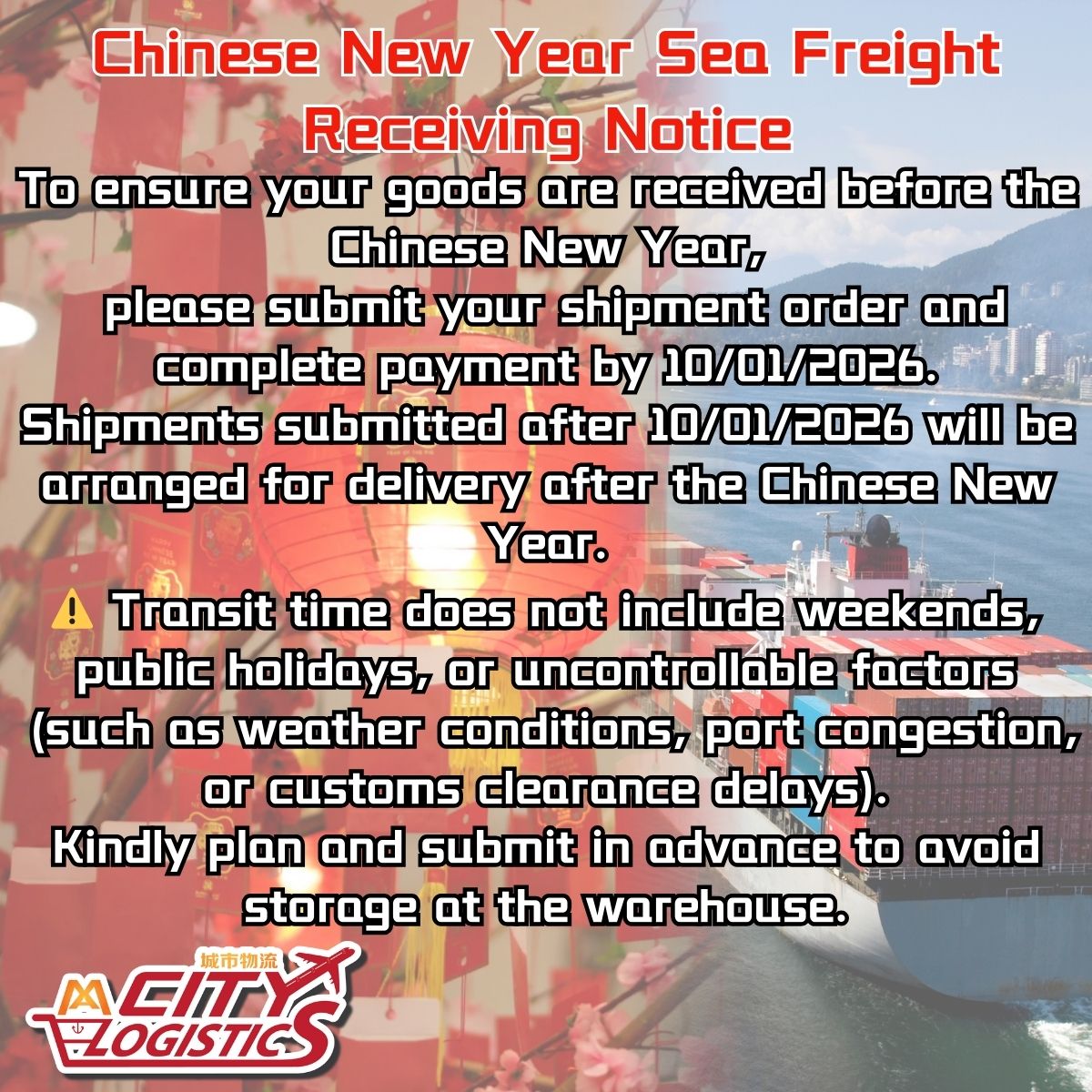 Chinese New Year Sea Freight Receiving Deadline Notice